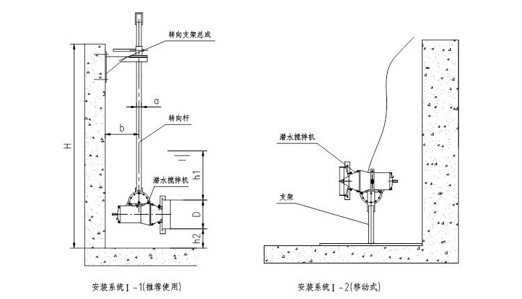 潛水?dāng)嚢铏C(jī)必需完全潛入水中工作;不能在易燃易爆或有強(qiáng)腐蝕性液體的環(huán)境中工作;鋼膨脹螺栓須按要求固定,安裝完畢后,必須將電纜拉緊固定好.