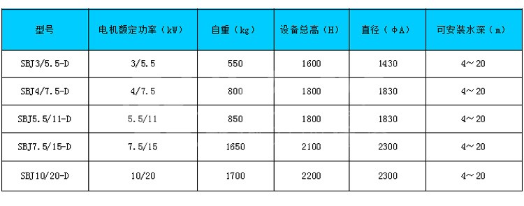 SBJ 型深水曝氣攪拌機(jī)是機(jī)電技術(shù)和生化技術(shù)的集成產(chǎn)品,它專為解決高濃度有機(jī)廢水,在生化處理過程中實(shí)現(xiàn)高 效率充氧的專用設(shè)備;主機(jī)采用雙速電機(jī)設(shè)計(jì),具有高速曝氣低速攪拌的雙重功效,加之潛水深度可達(dá) 20m 的卓越工作性能,是傳統(tǒng)曝氣設(shè)備無可替代的產(chǎn)品。