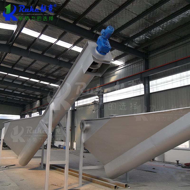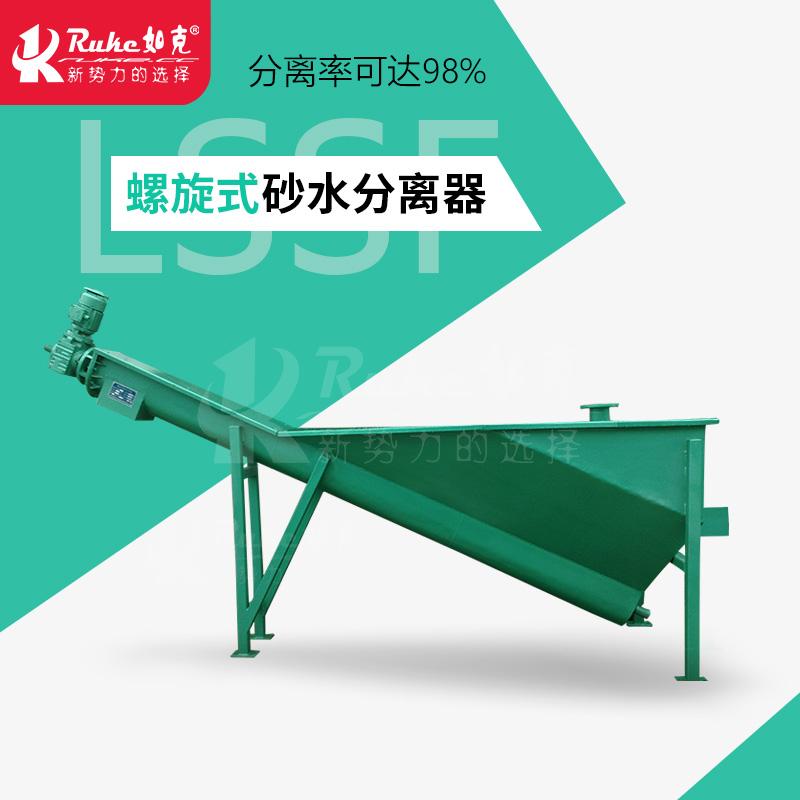 螺旋式砂水分離器由無(wú)軸螺旋、襯條、U型槽、水箱、導(dǎo)流板、出水堰和驅(qū)動(dòng)裝置組成。