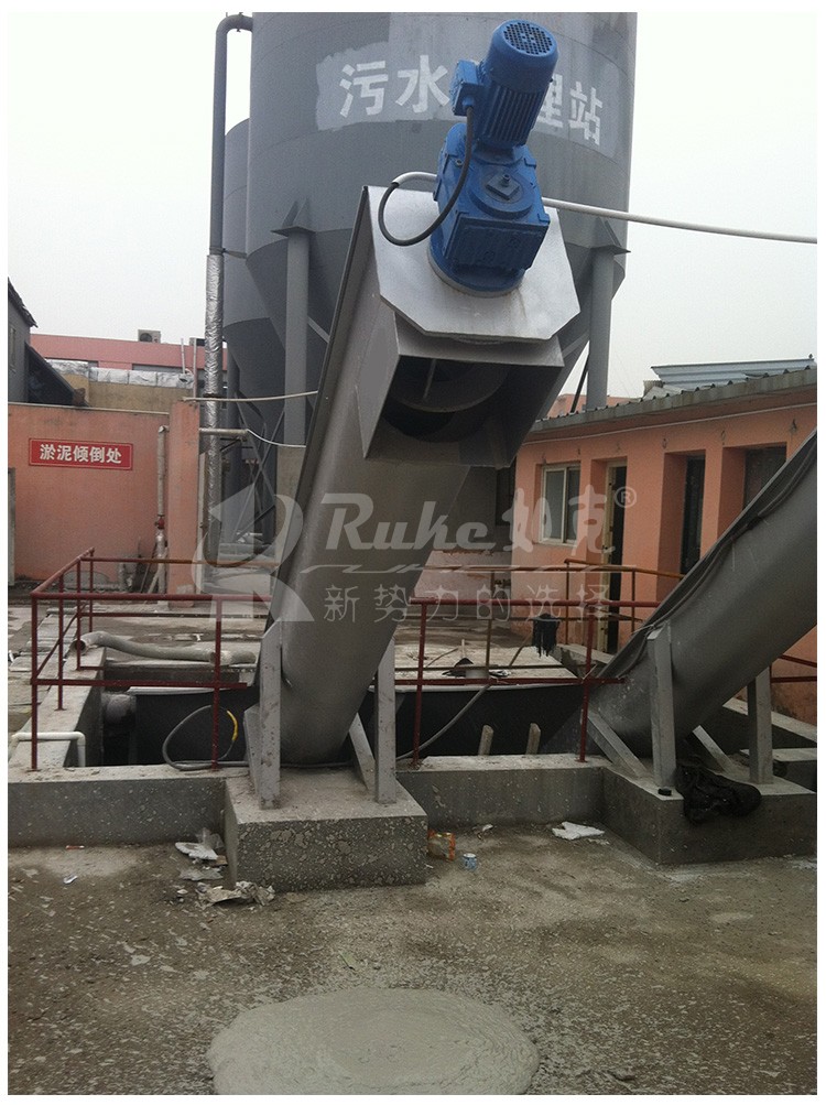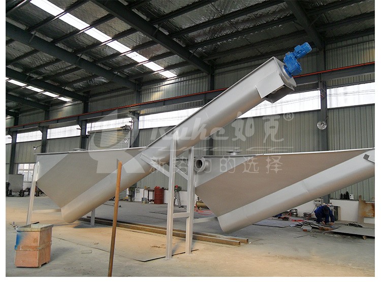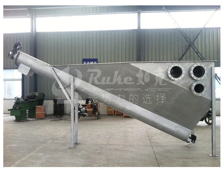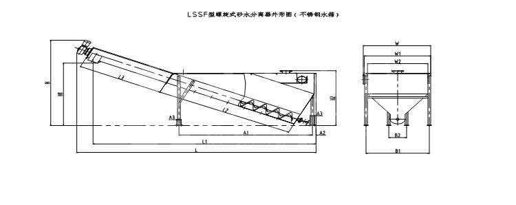 砂水混合物從分離器一端上部輸入水箱,混合液中重度較大的,如砂粒等將沉積于槽型底部,在螺旋的推動(dòng)下,砂粒沿斜置的槽底提出升,離開液面后繼續(xù)推移一段距離,在砂粒充分脫水后經(jīng)排砂口卸至盛砂桶,而與砂水分離后的水從溢流口排出并送往廠內(nèi)進(jìn)水池。