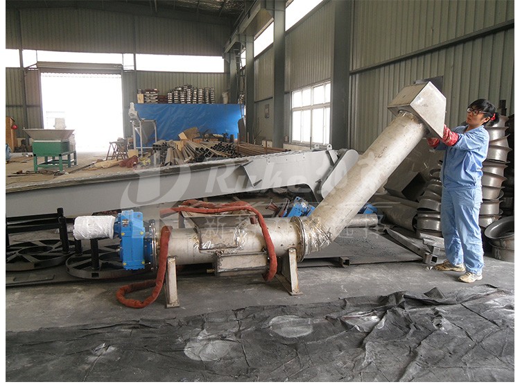 構(gòu)造及工作過程: 螺旋壓榨機(jī)由擠壓螺旋、螺旋管、傳動部件、進(jìn)料斗及卸料斗等組成。污物由進(jìn)料斗進(jìn)入螺旋管,在擠壓螺旋的作用下,壓縮、脫水后輸送至出渣口
