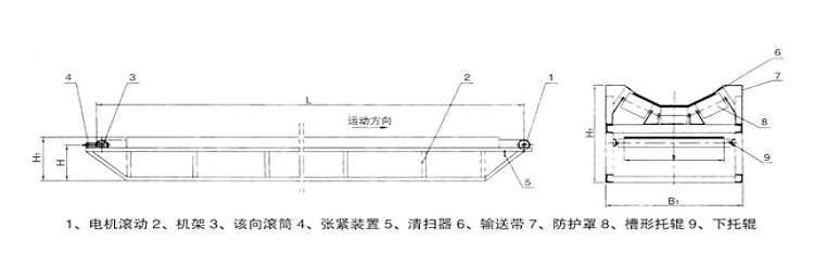 驅動裝置采用油冷氏電動滾筒,防護等級IP55,結構緊湊,占地面積小,易維護;