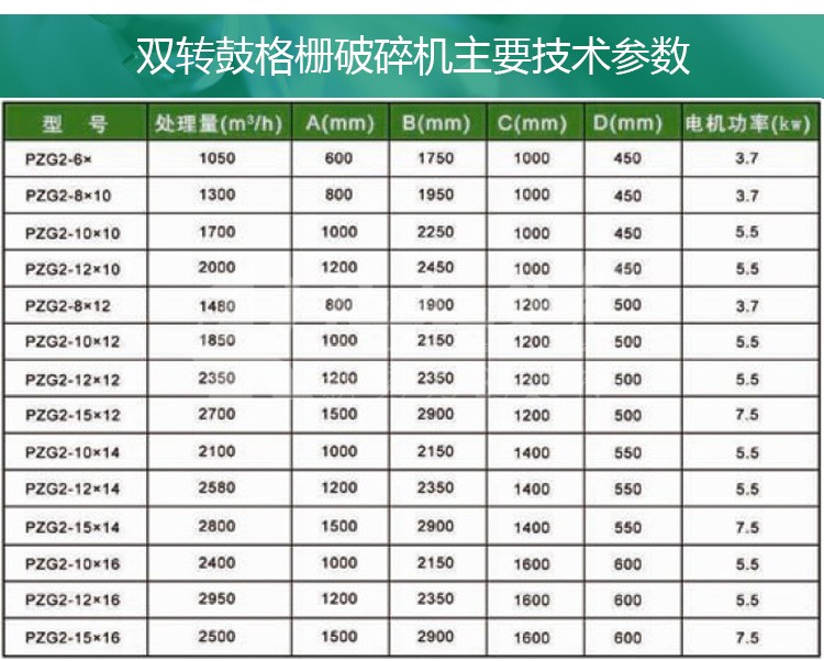 在驅動部件帶動下,轉鼓格柵的齒耙作圓周運動,將被圓形柵條截留的水中雜物,送至破碎機,而水從格柵中流過。破碎機驅動部件帶動主動軸轉動,同時主動軸通過精密齒輪帶動從動軸轉動,使固定于兩軸上的銑刀呈逆向旋轉,而將固體物咬擠破碎。