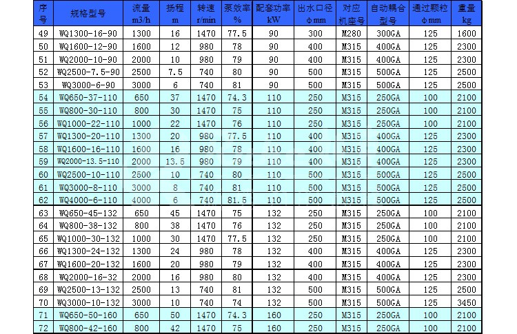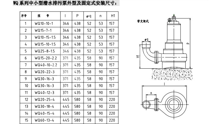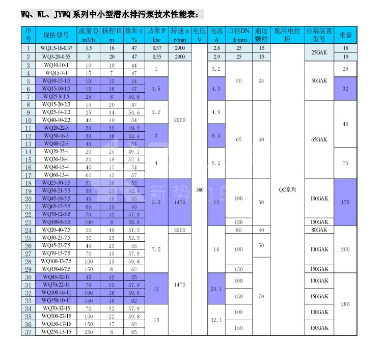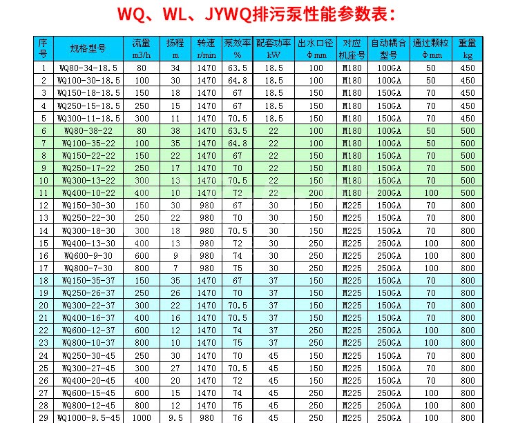 WQ 潛水排污泵,運(yùn)用于廣泛的給排水處理,提升工作效力。 WL 排污泵是在水面上立式安裝,使用干式電機(jī),以便于維護(hù) JYWQ 自動(dòng)攪勻泵是在 WQ 排污泵進(jìn)水端加了攪勻葉輪,一邊混合一